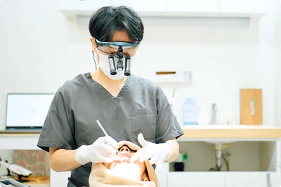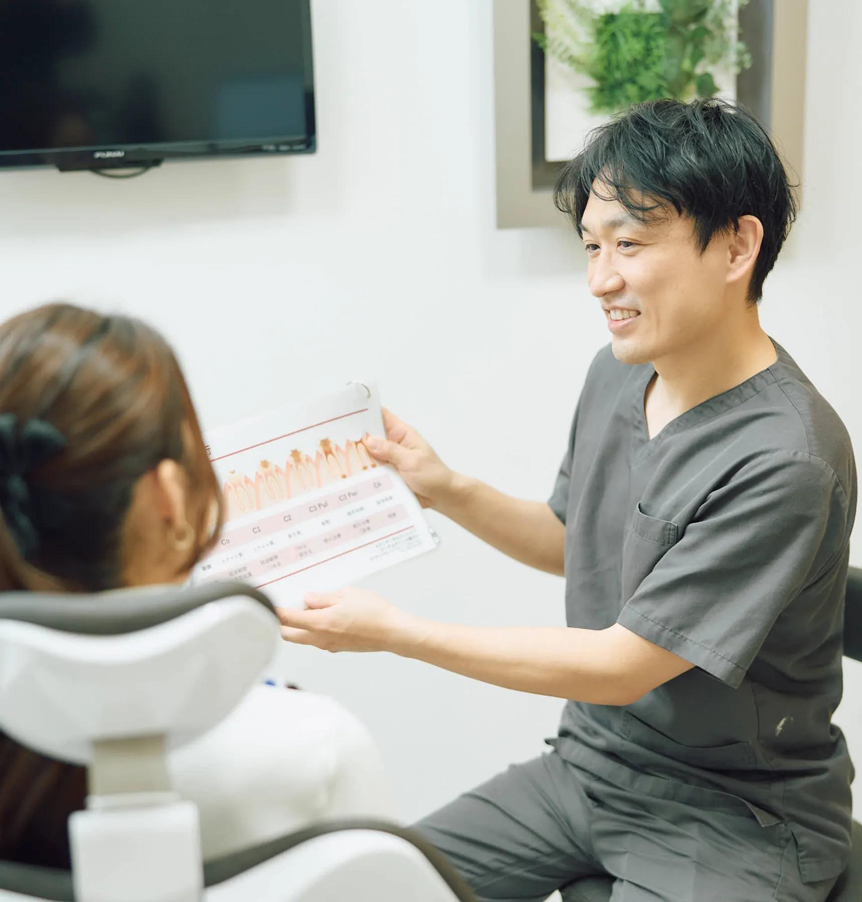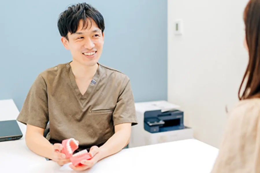 専門医による診断のもと、噛み合わせや将来の補綴、インプラント治療まで見据えた計画を立てます。治療期間や費用についても、無理のないペースで進めることを大切にしています。