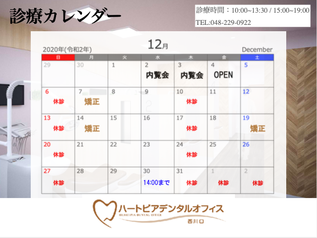 12月の診療予定