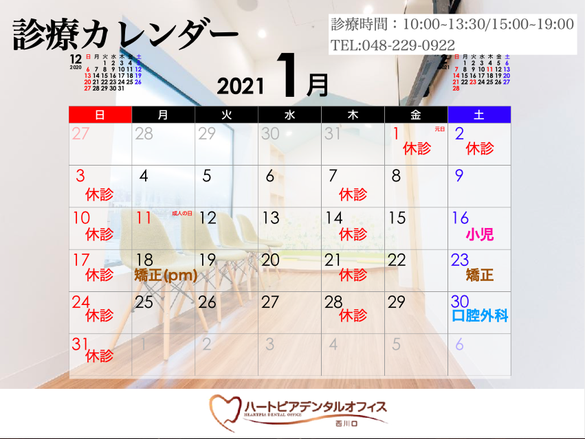 1月の診療予定