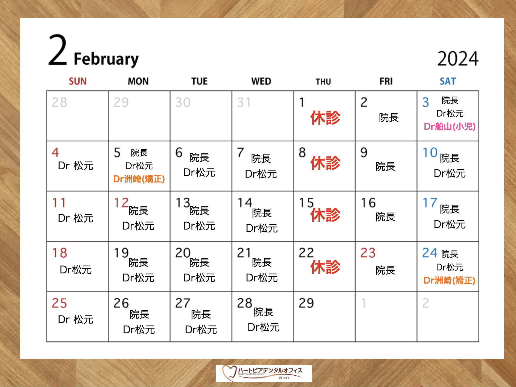 2 月の診療カレンダー