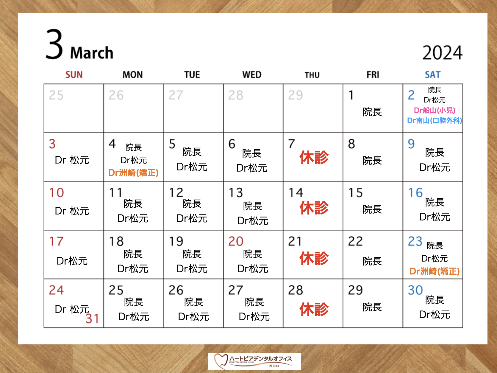 3月の診療カレンダー