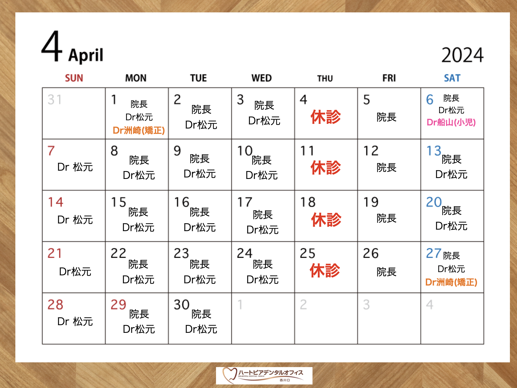 ★4月の診療カレンダー