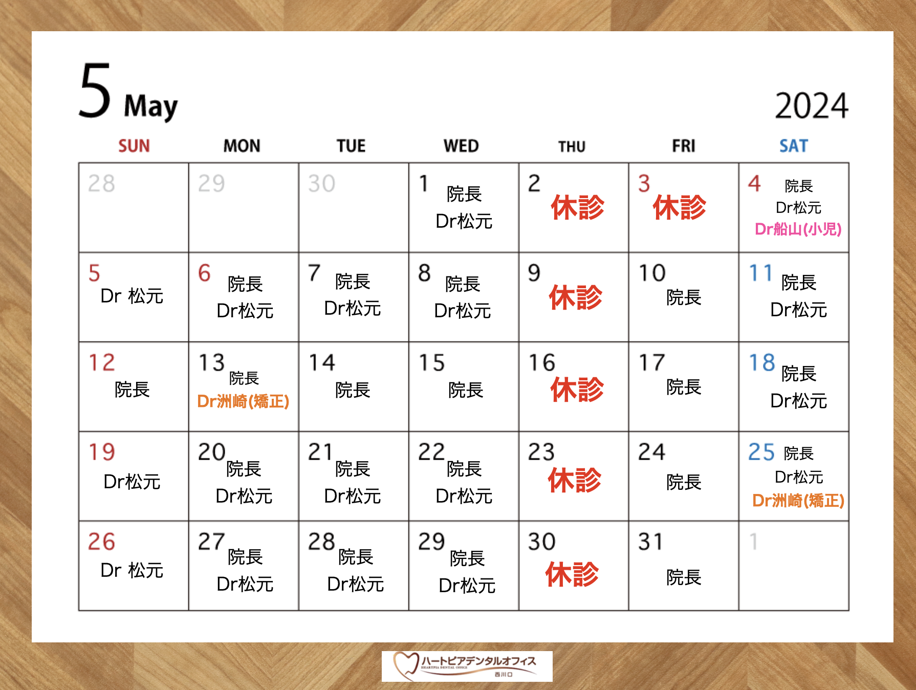 5/2(木)、3(金)は終日休診とさせていただきます。