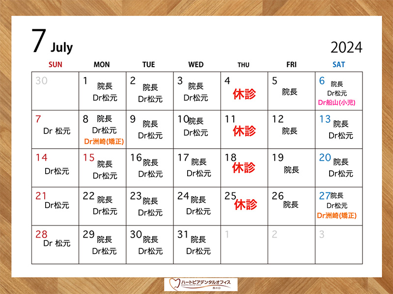 ★7月の診療カレンダー