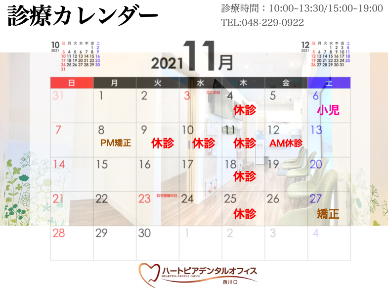 11/9(火)~12(金)amまで休診とさせていただきます。