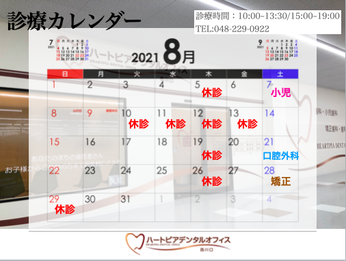 8月の診療予定