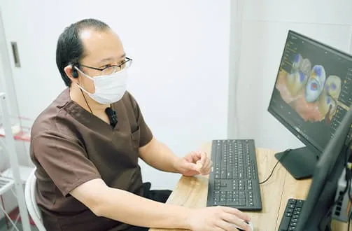 まずは現在のお悩みや治したい箇所、仕上がりのイメージなどを伺います。そのうえで、お口の状態を確認し、必要に応じてレントゲン撮影や口腔内スキャナーによるデジタル印象を採得し、治療の適応を判断します。