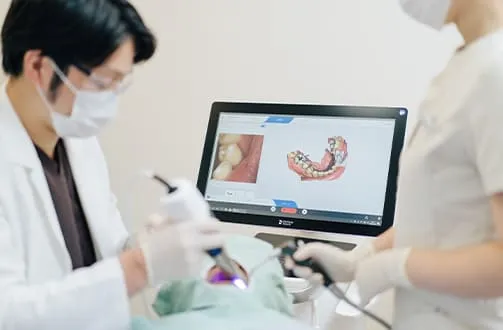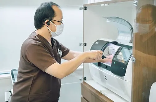 MI総合歯科クリニックでは、その日のうちにセラミック治療を完了できる「1Dayセラミック治療」に対応しています。口腔内スキャナーで型採りを行い、採得した3Dデータをもとに院内のミリングマシンでセラミックを即日作製します。