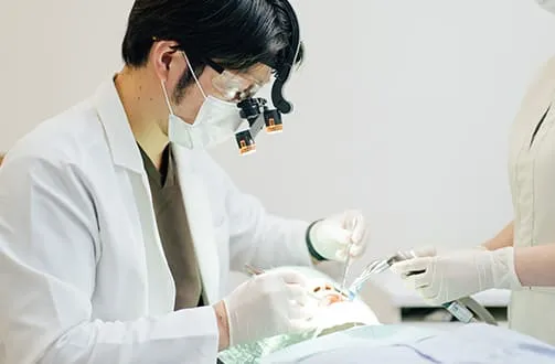 当院では、セラミック治療の際に拡大鏡を使用し、微細な歯の形態や境界部分、噛み合わせの接触点まで正確に確認しながら処置を行っています。