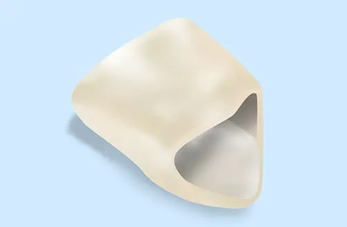 土台と接する箇所を強度に優れたジルコニア、周りの歯に接する箇所は硬すぎないセラミックで作られた被せ物です。オールジルコニアクラウンよりも天然歯に近い色調の再現が可能です。