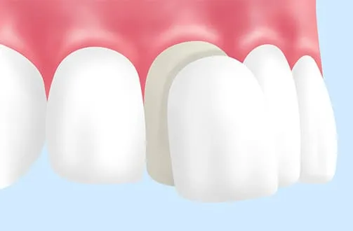前歯を一層削り、シェル状の薄いセラミック製の板を貼りつける処置です。健康な歯を一層削らなければなりませんが、白く美しいうえ、形の整った前歯が手に入ります。