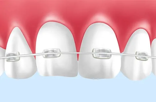 仕組みや効果はメタルブラケットとほぼ同様ですが、ブラケット部分に白いセラミック素材を使用しているため、目立ちにくいのがメリットです。